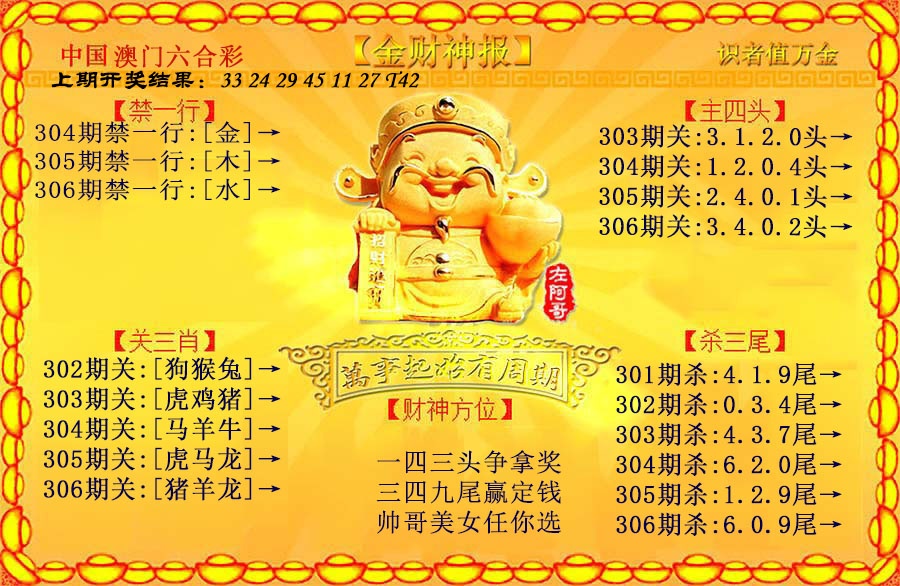 | 305期: 买啥都中 【大数大数大数】开:鼠42准 |